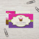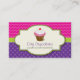 Ce carte de visite de cupcake clair et fantaisiste ne manquera pas d'attirer l'attention. Le cadre couleur crème tient le cupcake au chocolat recouvert de cerise avec un glaçage rose et blanc et un nom d'entreprise et une description. Il se trouve face à un chevron rose coloré et un arrière - plan de pois pourpre. Le verso révèle le cupcake tout près d'un panneau crème contenant les informations commerciales. Disponible en couleurs alternatives avec des produits correspondants.