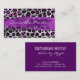 Violet, magenta, noir. fausse feuille gris et argent et tache léopard noir avec un joli trait de feuille de parties scintillant violet pour votre nom. Design safari moderne pour sa petite entreprise. Cartes de visite de glamour de girly Magenta violet.