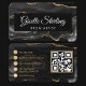 Promote your brow brand with this brow artist QR code black gold business card. The sleek black design paired with gold accents creates a bold, luxury look, while the integrated QR code allows clients to quickly access booking links, social media, or an online portfolio. Designed for brow artists and brow technicians seeking a polished, print-ready business card with modern digital convenience.