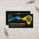Une couverture entièrement noire est munie d'une onde électrique qui recharge une ampoule contenant un "filament-lettre" à l'intérieur. La lettre-e peut représenter votre nom prestigieux, votre nom commercial, etc. Près de la base, vous avez le nom d'entreprise en jaune vif et ses coordonnées. En haut se trouve le logo lettre-e dorée que vous pouvez utiliser, suivi de votre nom prestigieux, des coordonnées et d'une option de légende de slogan que vous pouvez modifier pour répondre à vos propres besoins de service. C'est une carte créative faite pour les électriciens. #électricien #électricité #entrepreneur électrique #réparations électriques #électricité #ingénieur électrique #éclairage #bulbe #plug #zazzlemade