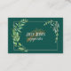 Les couleurs vert épicéa et vert cool du feuillage encadrent vos informations commerciales. Accents de plume doré.