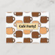 Café Café Café Shop Carte de visite design original par Nisha Prabhu. Entièrement Personnalisable. Personnalisez avec vos détails. Faites une impression durable avec notre Carte de visite Café Café Shop! Parfait pour les propriétaires de cafés, les baristas ou les amateurs de café qui souhaitent partager leur amour pour le café, ce carte de visite élégant présente un design délicieux qui présente un éventail de tasses à café charmantes, dressées contre un arrière - plan chaleureux et accueillant. Que vous soyez en train de promouvoir votre nouveau café, de faire du réseautage lors d'événements locaux ou de partager votre passion pour le café, ce carte de visite saisit l'essence de votre marque avec élégance et personnalité. Idéal pour les propriétaires de café, les baristas et les amateurs de café.