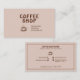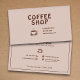 Un carte de visite marron avec l'illustration d'une tasse de café, pour le coffee shop, le bar, le restaurant, le café-grill, le tea shop, etc. Il est livré avec des informations personnalisables décorées par des icônes et les heures d'ouverture!