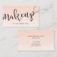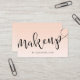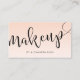 Elégant design minimaliste de carte de visite de maquillage qui comprend votre nom et le texte de maquillage dans une écriture manuscrite moderne, arrière - plan rose pâle dégradé et une information de contact sur le côté inverse.