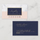 Style de calligraphie moderne minimaliste Elégant or Accent tendance Pastel Blush Pink & Midnight Blue Color Combiner Carte de visite de fidélité personnalisable avec les icônes des médias sociaux (Facebook, Twitter & Instagram) #LoyaltyCards #LoyaltyBusinessCard #BusinessCard #ModernBusinessCard #CustomizableBusinessCard #Stationery @Zazzle #Zazzle ZazzleMade modifiable et personnalisable ! Parfait pour de nombreuses professions visuelles de pointe créatives à la recherche Idéal pour les indépendants Planificateur d'événements, Wedding planner, Consultant, Stylistes, Designers, Artistes, Salon Firmes Office CPA, Design Agency, Branding Company Décor Mode Lifestyle Consulting Boutique Magasins Immobilier Agent, Consultant, Instructeur personnel, Entrepreneur & innombrables autres. Pour la carte Office Visite, Présentation Calligraphie, Papeterie Calligraphie et Professionnels Créatifs (IMAGE GOLD TONE, NOT FOIL)