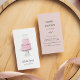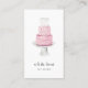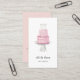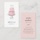 Les élégants cartes de visite verticaux pour votre entreprise de boulangerie, pâtisserie ou de décoration de gâteau présentent une illustration de gâteau à l'aquarelle en rose et blanc, avec deux lignes de texte personnalisé sous votre nom et nom d'entreprise ou profession. Ajoutez vos coordonnées à l'envers sur un arrière - plan rose pastel sucré