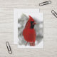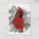 Cette carte de commerce d'artistes présente un brillant cardinal rouge. Il est vraiment le roi des oiseaux jardins ! Ici, il est perché sur un rail enneigé mangeant des graines de tournesol à l'huile noire tandis que la neige d'hiver tourbillonne autour de lui.