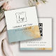 Carte De Visite Carré Aqua Blue Gold Paint Texture Logo QR Code