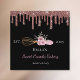 Add a touch of sparkle and charm to this personalized square business card featuring a sleek black background, shimmering pink glitter, pink, purple flower with a whisk detail perfect for bakers and small business owners. Customizable with your name, year and business information, this stylish design brings a professional yet feminine touch to every order.