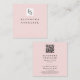 Carte De Visite Carré Blush Pink Script Logo QR Code Lashes