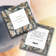 Un design carte de visite de style boho terreux avec des teintes brun et gris charbon de bois avec une plaque centrale. Des feuilles terribles qui tombent.