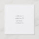 Carte de visite, taille : Carré : 6.4 cm x 6.4 cm, papier : Signature UV mate, coins : Carré
