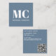 Carte De Visite Carré Initiales Monogrammes modernes QR Code Dusty Blue