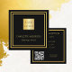 Un arrière - plan noir classique et des cadres en faux or. Personnalisez et ajoutez le logo, le nom et le texte de votre entreprise à l'avant. Retour : Modèles pour votre nom, titre, numéro de téléphone, adresse postale et de site, QR-code à votre site Web ou compte de médias sociaux.