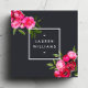 Ce design luxueux présente des illustrations de roses d'aquarelle rose/rouge vif avec des feuilles qui chevauchent un cadre blanc portant votre nom ou votre nom d'entreprise. Le design élégant est recto verso pour permettre une grande place pour vos coordonnées sur le côté arrière de la carte. Le contraste entre le rose vif et l'arrière - plan gris foncé ajoute richesse et profondeur au design. Parfait pour les métiers créatifs tels que stylistes, stylistes, créateurs de mode, artistes de clous, planificateurs d'événements, artisans, designers d'intérieur et plus encore. OEuvre originale d'aquarelle © 1201AM