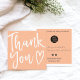 Moderne minimaliste et élégant blanc et pêche ordre d'affaires Merci brosse script police avec un coeur. Ajoutez vos médias sociaux. Avec une police de script de signature élégante, toutes les couleurs sont modifiables, ajoutez votre logo.
