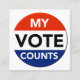 Il n'y a pas de travail plus important dans notre démocratie que celui de l'électeur. Si vous avez déjà eu le moindre doute sur le fait que votre vote compte, jetez un coup d’oeil à tant d’élections partisanes récentes dans notre politique divisée. Dans certains coques, seule une poignée de voix a fait la différence dans les bureaux électoraux nationaux, primaires et généraux. Si les partisans du candidat adverse s'étaient présentés aux urnes, les résultats auraient été différents. C’est aussi simple que ça. Montrez au monde que "Mon vote compte" avec ce bouton d'élection, parce qu'il le fait vraiment.