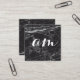 Carte De Visite Carré Monogramme de script | Marbre noir