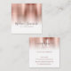 Carte De Visite Carré Monogramme métal brossé rose or élégant Script