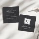 Le design chic et professionnel du carte de visite carré imprimé sur un papier noir unique comprend un élément carré moderne tenant votre monogramme initial unique, avec votre nom et titre ou nom d'entreprise sous en lettres minuscules contemporaines. Personnalisez l'envers avec vos coordonnées en blanc correspondant. Un choix moderne pour n'importe quelle occupation; échantillon montré pour les agents immobiliers ou immobiliers.