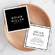 Un carte de visite carré professionnel moderne avec un noir solide bordé de blanc à l'avant et une mince bordure noire contre un arrière - plan blanc à l'arrière. Ce carte de visite est idéal pour divers professionnels tels que Consultants, Comptables, Agents Immobiliers, Freelancers, etc. Ce carte de visite polyvalent fonctionne également comme un emballage ou une étiquette de produit. Cette conception est également disponible en bleu et noir que vous pouvez voir ici https://www.zazzle.com/rosewoodandcitrus/gifts?cg=196997542081207163?rf=238364477188679314 Personnalisez-la en remplaçant le texte de l'espace réservé. Pour plus d'options comme changer la police et sa taille/couleur ou l'espacement entre les lettres cliquez sur le bouton "Personnaliser". *Veuillez noter que le filigrane Zazzle qui apparaît dans l'aperçu du zoom n'apparaîtra PAS sur le produit imprimé final. © Bois de rose et agrumes