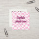 Stand out with this fun and trendy square business card featuring a pink wavy checkerboard pattern and bold script name. The playful yet stylish design makes networking memorable and helps your brand feel modern and friendly. The back of the card includes a customizable QR code, allowing clients to instantly access your website, booking link, portfolio, or social media with one quick scan.