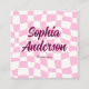 Carte De Visite Carré Trendy Pink Checkerboard with QR Code