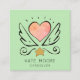 Carte de visite soignant avec un joyeux arrière - plan bleu vert bleu. Vous pouvez customiser l'arrière - plan dans votre propre choix de couleur pour convenir à votre propre esthétique. Coeur et ailes capricieux. Les doulas sont comme des anges avec le coeur. Un grand symbole de coeur et d'ailes pour cette profession honorée.