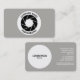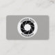 Modèle de carte de visite avec un symbole d'ouverture dans un cercle blanc avec nom de société de texte incurvé et type d'entreprise. Nom de l'entreprise et type d'entreprise à l'avant, avec nom et autres coordonnées au verso à l'aide du panneau en cercle blanc sans le symbole d'ouverture pour le nom et le titre de l'emploi, disposés à gauche.