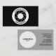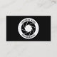 Modèle de carte de visite avec un symbole d'ouverture dans un cercle blanc avec nom de société de texte incurvé et type d'entreprise. Nom de l'entreprise et type d'entreprise à l'avant, avec nom et autres coordonnées au verso à l'aide du panneau en cercle blanc sans le symbole d'ouverture pour le nom et le titre de l'emploi, disposés à gauche.