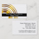 Un design carte de visite professionnel avec des cercles dorés sur un arrière - plan blanc agrémenté d'une bande noire. Personnalisez avec vos détails.