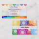 Cette conception représente les sept chakras principaux, qui sont des centres d'énergie spirituelle dans le corps. Il s'agit de la racine, sacré, plexus solaire, coeur, gorge, troisième oeil et chakra de couronne. Chacune est une couleur de l'arc-en-ciel : rouge, orange, jaune, vert, bleu, indigo et violet. Ce carte de visite serait parfaitement adapté à un guérisseur d'énergie, un maître / enseignant de Reiki, un instructeur de yoga, ou toute autre personne dans le domaine spirituel / guérison.