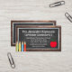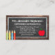 Arrière - plan en damier gris foncé et noir avec arrière - plan motif en bois. Partagez les détails de votre enseignant avec les parents, les élèves et les autres éducateurs avec ce carte de visite thématique de l'école et de l'éducation. Idéal pour le primaire, le moyen, le lycée et le collège. Arrière - plan foncé avec texte et détails personnalisés de titre. Crayons colorés et formes de pomme avec l'image de la carte de style primaire, idéal pour un tuteur, école d'accueil, ou instructeur ou administrateur de remplacement. Idéal pour un ado ou un enfant événement scolaire ou un cadeau pédagogique lié à l'éducation.