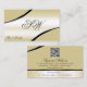 Carte De Visite Champagne Beige Courbe Lignes Monogramme et QR Cod