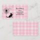 Silhouette de chat noir avec pissenlit et semis sur motif plaid rose et blanc.