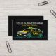 Un chauffeur de taxi moderne Chauffeur Carte de visite, parfait pour faire une impression professionnelle. L'aménagement comprend une icône élégante de voiture de taxi dans des tons jaunes et noirs frappants, dressée contre un arrière - plan noir sophistiqué. Votre numéro de téléphone et votre nom commercial ou personnel sont affichés en évidence sur le devant pour faciliter la reconnaissance. Personnalisez le dos avec vos coordonnées et une liste de services offerts pour fournir un aperçu complet aux clients potentiels. Idéal pour les chauffeurs de taxi et les chauffeurs qui souhaitent améliorer leur image de marque professionnelle.