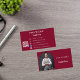 Un arrière - plan bordeaux. Personnalisez et ajoutez votre titre, nom/nom commercial et texte à l'avant. Texte blanc. Un cadre photo en arc. Retour : Modèles pour Votre nom, titre, numéro de téléphone, adresse postale et de site, votre propre code QR à votre site Web ou compte de médias sociaux. Image Facebook et Instagram/compte.