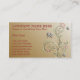 Beau carte de visite aux tons dorés avec des tourbillons floraux et des papillons frolants.