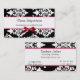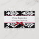 Le carte de visite noir et blanc élégant de damassé, avec un satin rouge regardant l'arc et la frontière rouge accentue décorer l'avant. Customisez ce carte de visite renversant pour vous-même ou société en changeant le texte, style de police des textes, couleur, même ajoutez et supprimez les champs à vos besoins.