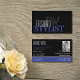 Carte De Visite Chic noir bleu blanc simple Monogramme et photo