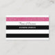 Carte De Visite Chic noir et blanc rayures rose FAUX Glitz