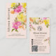 Ce charmant carte de visite à la décoration florale est décoré d'une belle aquarelle florale peinte à la main. L'avant présente un agencement époustouflant de fleurs éclatantes dans les tons rose, jaune et orange, dressées contre un arrière - plan rose pastel moelleux. Au dos, la carte conserve son thème floral avec des accents floraux délicats, offrant un espace suffisant pour votre logo, les coordonnées, les poignées de médias sociaux et un code QR pour un accès facile à votre portefeuille ou à votre liste de prix. Le design est entièrement personnalisable, vous permettant d'ajuster les couleurs pour correspondre à l'esthétique de votre marque. Cette carte est parfaite pour les créateurs floraux qui cherchent à faire une impression durable.