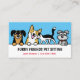 Un carte de visite original de style dessin animé pour votre entreprise de soins des animaux ! Ce design coloré présente des chiens et des chats mignons avec plus de dessins sur le dos et de l'espace pour personnaliser facilement avec vos informations. Corgi adorable, Dachshund aux cheveux longs, chaton tuxedo adorable, Schnauzer, Poméranie et dessins du chocolat Lab. Parfait pour les randonneurs à chiens, les entraîneurs, les gardiens de chiens, les vétérinaires, les services de garde d'animaux de compagnie et plus encore. Faites une première impression mémorable avec un carte de visite amusant que vos clients voudront garder et partager avec des amis.