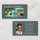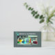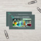 Carte de visite avec l'image d'un laboratoire coloré (avec des bulles toxiques ludiques qui sortent) sur un arrière - plan turquoise gris. Sur le dos est l'espace pour votre photo personnalisée (en option). Idéal pour un scientifique spécialisé en chimie ou un enseignant/tuteur.