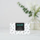 Un carte de visite chic coiffeur styliste en blanc avec un motif moderne de ciseaux et peignes en noir et turquoise. Votre nom dans une combinaison de police moderne sans serif et joli script.