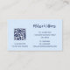 Aquarelle bleue carte de visite d'art abstrait avec un nom personnalisé dans un script écrit à la main. Le script fluide et élégant correspond à la conception abstraite. Modèles pour votre nom, titre, numéro de téléphone, adresse postale et de site web, QR-code à votre site web ou compte de médias sociaux. Ce carte de visite de brosse bleu ciel est parfait pour les salons de beauté, les spas et les massages, les planificateurs mariages et évènements, les décorateurs et plus encore