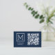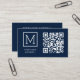 Ce carte de visite présente un logo monogramme minimal sur un arrière - plan de la Marine avec un code QR à l'avant. Personnalisez-le avec votre propre texte.
