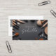 Un carte de visite maquilleur minimaliste moderne, avec une typographie de script, et des outils de maquillage de la profession sur un arrière - plan gris fusain. Code QR et médias sociaux au verso de la carte. Un style simple et chic.