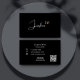 Un arrière - plan noir au texte blanc et doré. Personnalisez et ajoutez votre prénom et vos initiales monographiques à l'avant. Retour : Modèles pour Votre nom, titre, numéro de téléphone, courrier, adresse du site, votre propre code qr à votre site ou compte de médias sociaux.