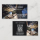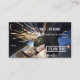 Carte de visite mettant en vedette un soudeur au travail. Le rectangle autour du numéro de téléphone est une forme personnalisée et peut être ajusté à vos besoins (ou supprimé). Le code QR est également optionnel et personnalisable. Magnifique pour un soudeur professionnel ou une entreprise de soudage.
